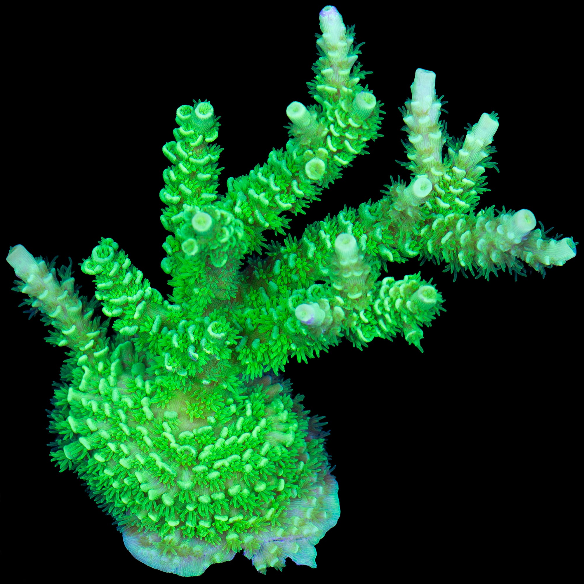 Vivid's Nuclear Green Super Fuzz Acropora Coral - Lg Frag